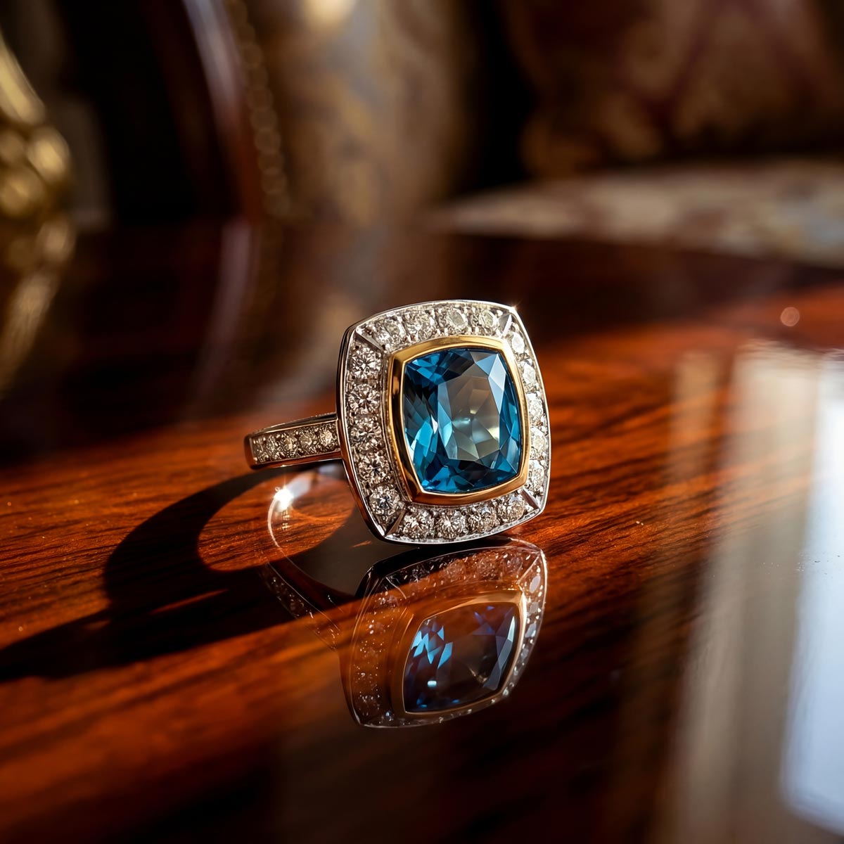主に大粒のカラーストーンで構成し、枠のデザインはすべて主石に合わせて特別にデザイン。